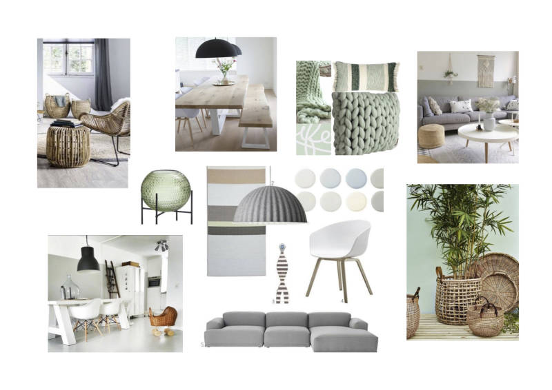 Deze klant wilde graag een kleur, daarom hebben we samen voor de groen / grijze kleur gekozen. Klant houdt van Scandinavische uitstraling, dit heb ik verwoord in deze sfeerimpressie.